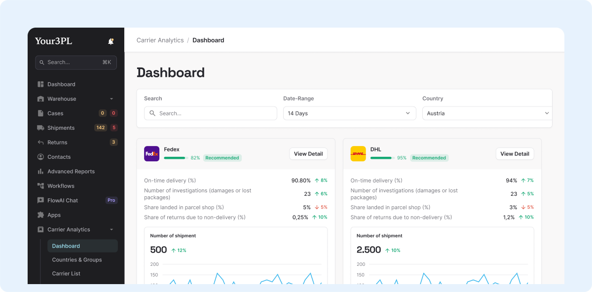 With this data, 3PLs can identify underperforming carriers, negotiate better rates, and fine-tune service options. At the same time, your clients gain a transparent, data-driven view of how their orders are being handled — strengthening trust and reducing support overhead.